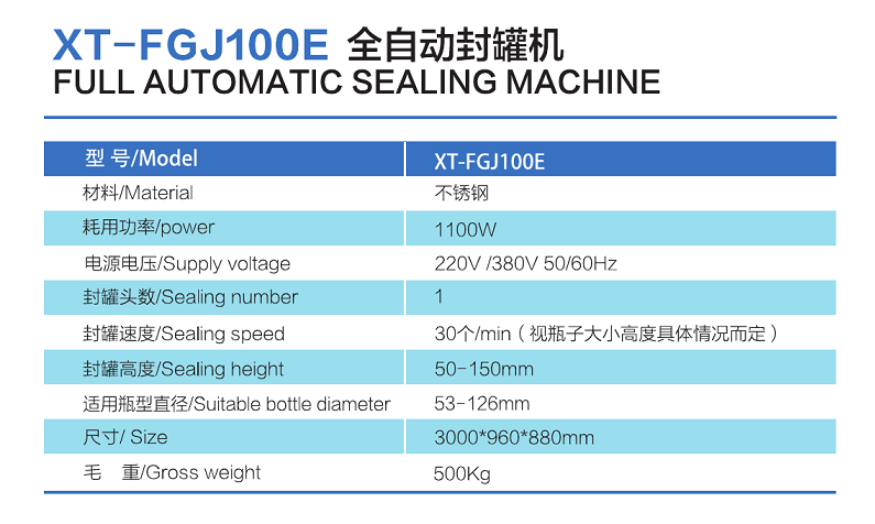 3、該機的生產(chǎn)效率是傳統(tǒng)半自動封罐機的2-3倍, 而且由于采用全自動下蓋和封罐,